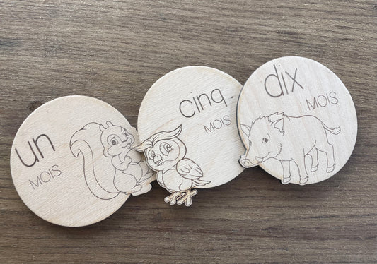 Cartes étapes première année de bébé thème animaux de la forêt .