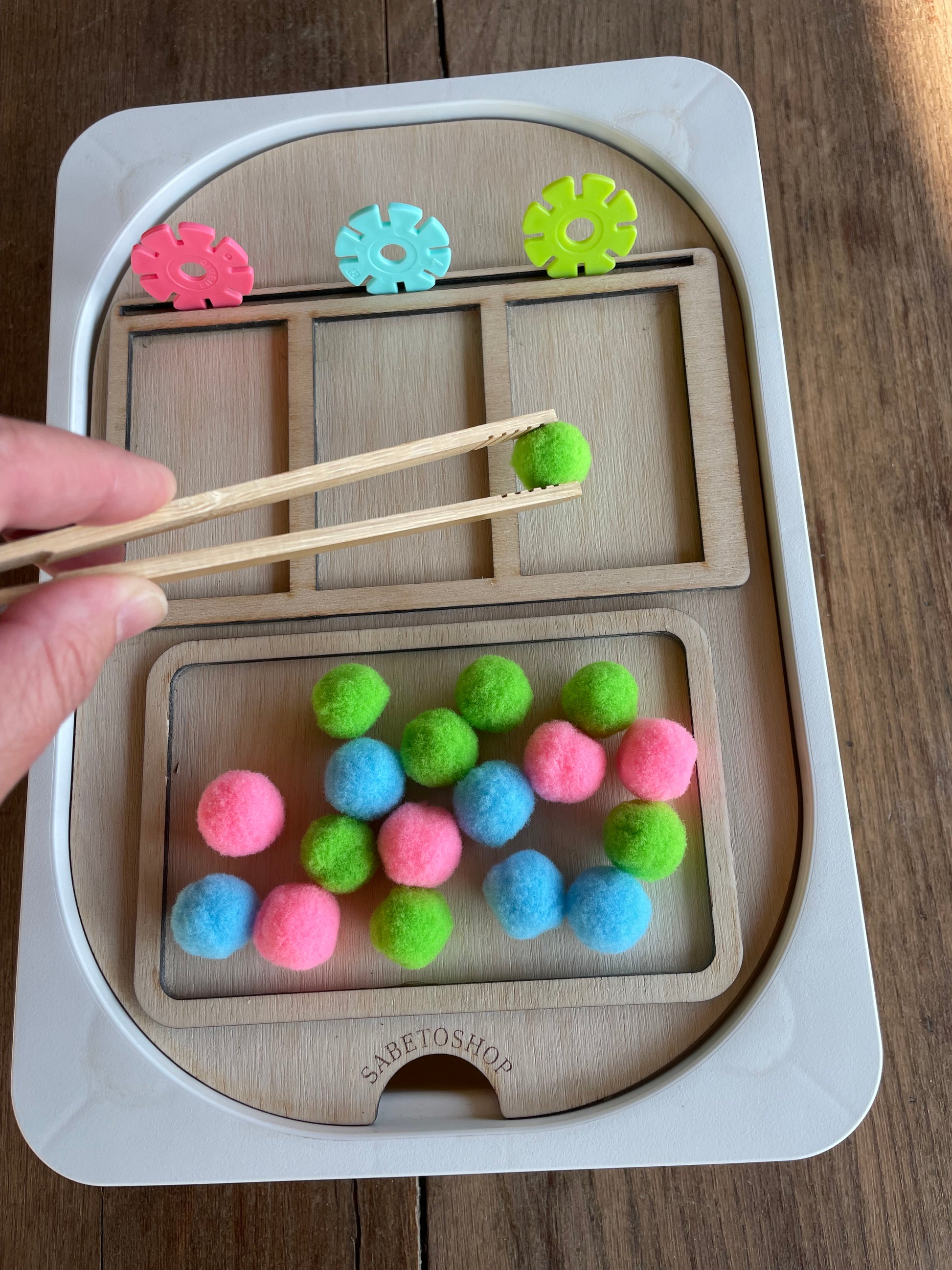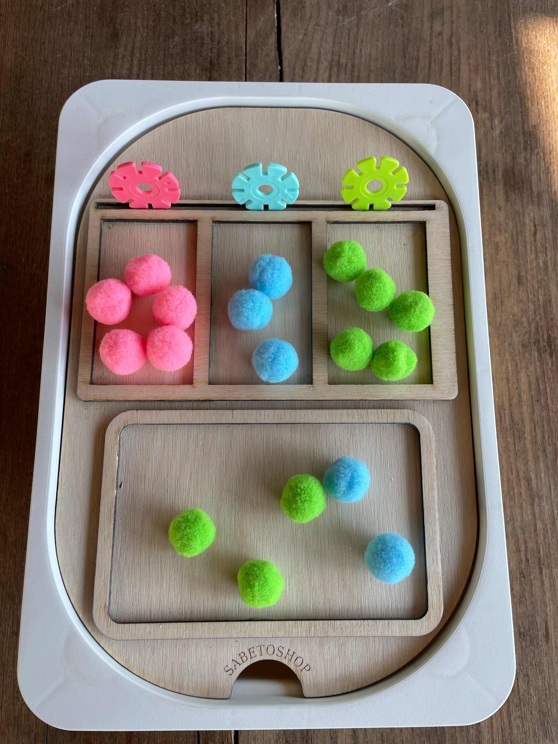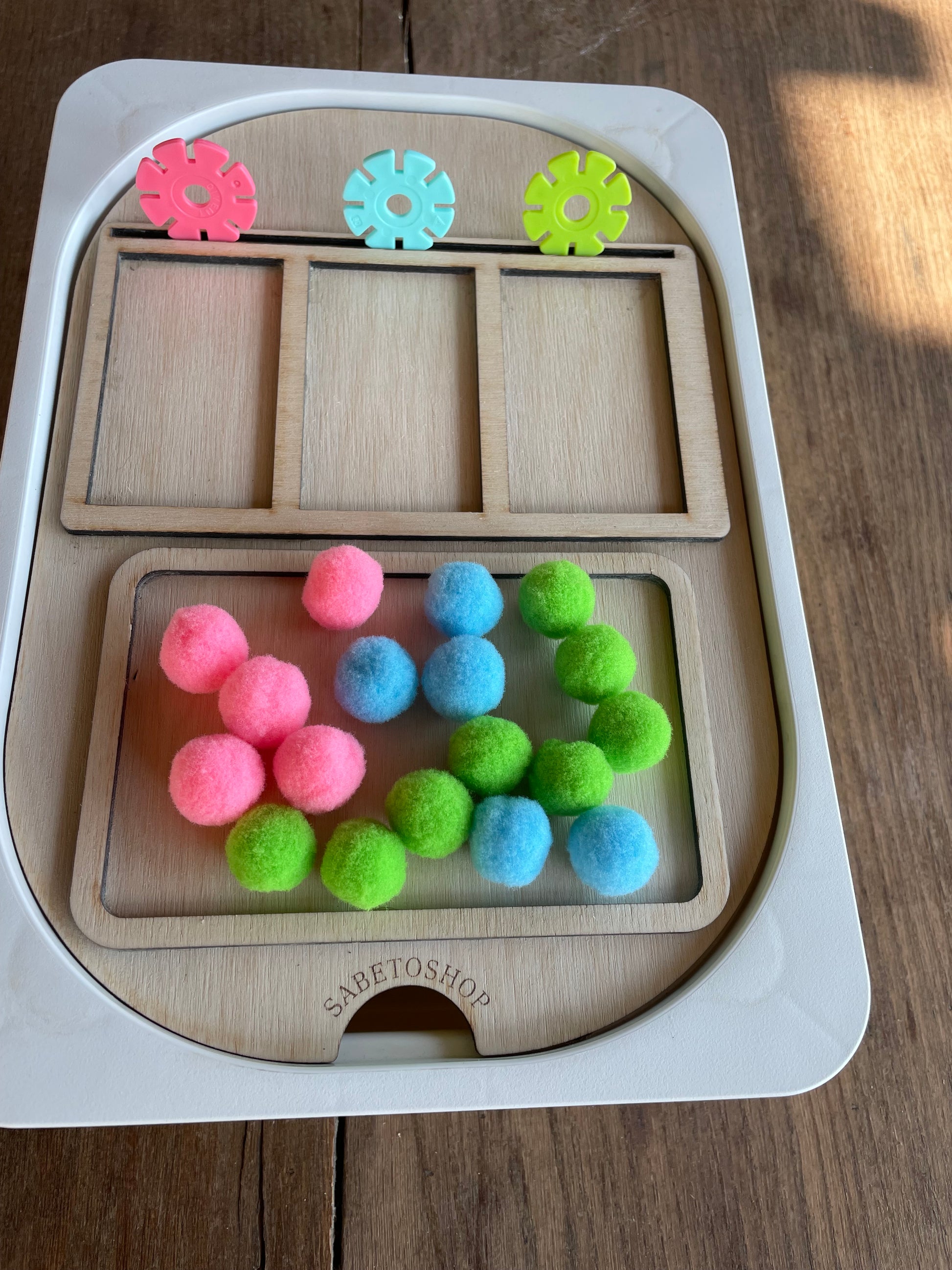 Plaque de tri en bois adaptée au petit bac Trofast (30x20x10 cm ) idéal pour les activités de correspondances des couleurs , des formes ,etc …