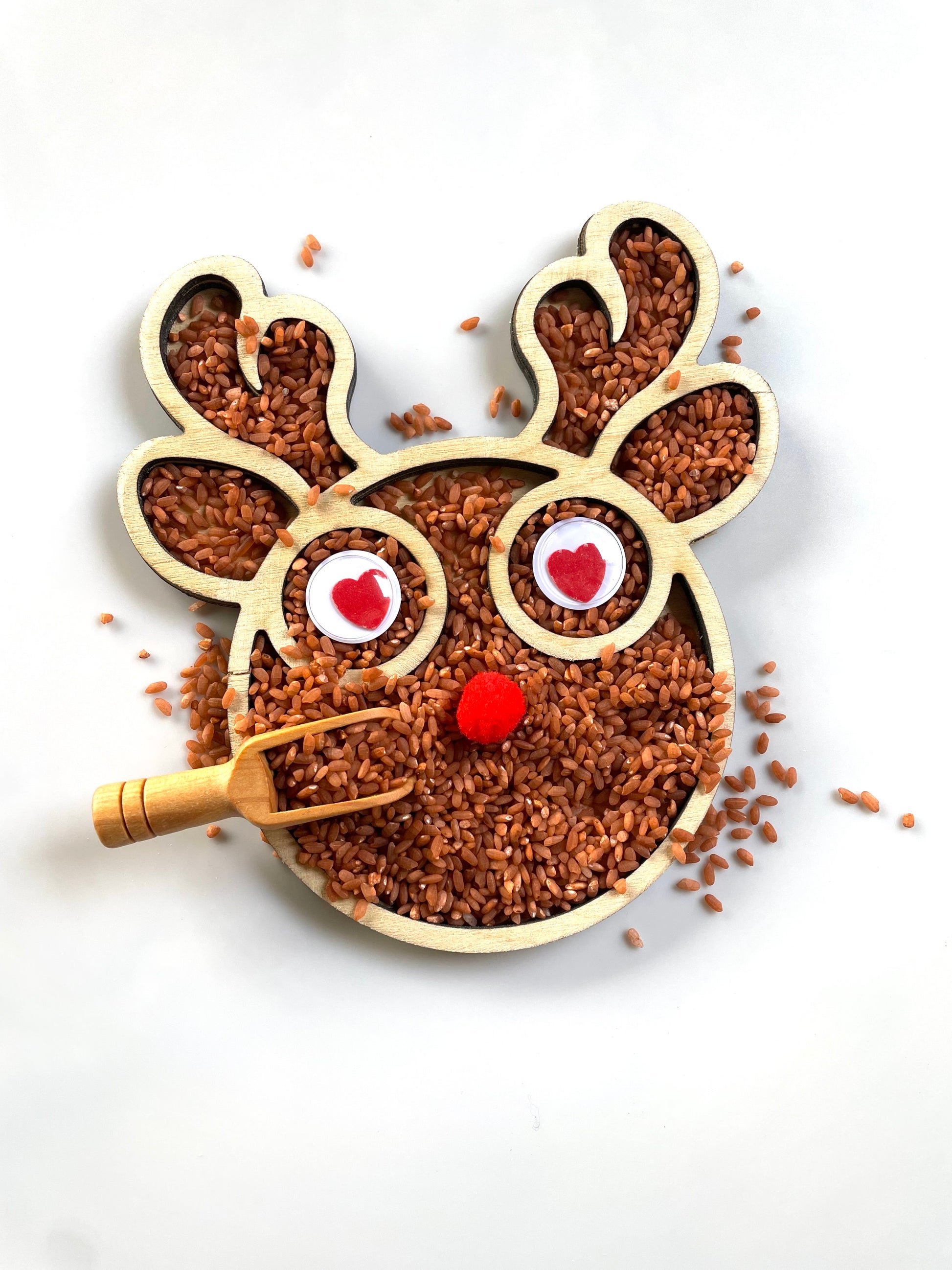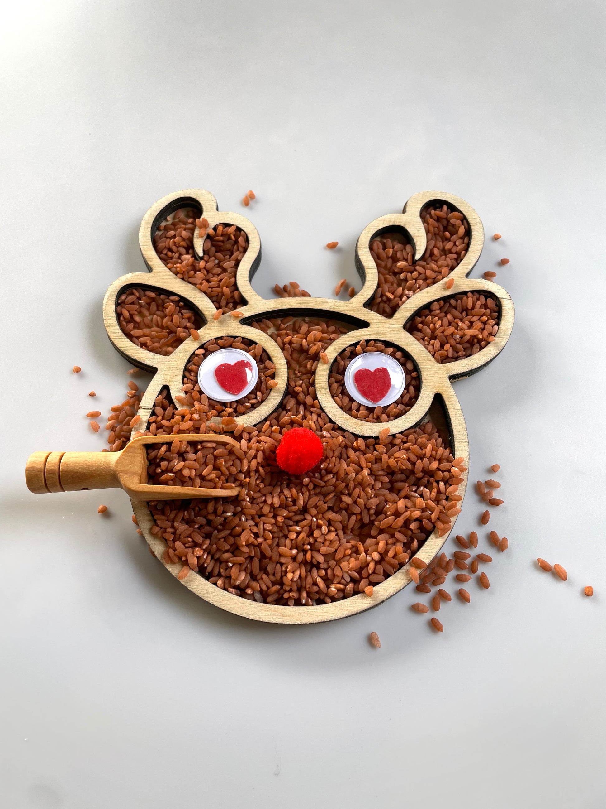 Laissez entrer la magie de Noël dans vos activités d’éveil avec ce superbe plateau sensoriel en forme de renne ! Ses compartiments ludiques, ses bois stylisés et son grand espace central en font un support parfait pour le transvasement, le tri et l’exploration sensorielle.
