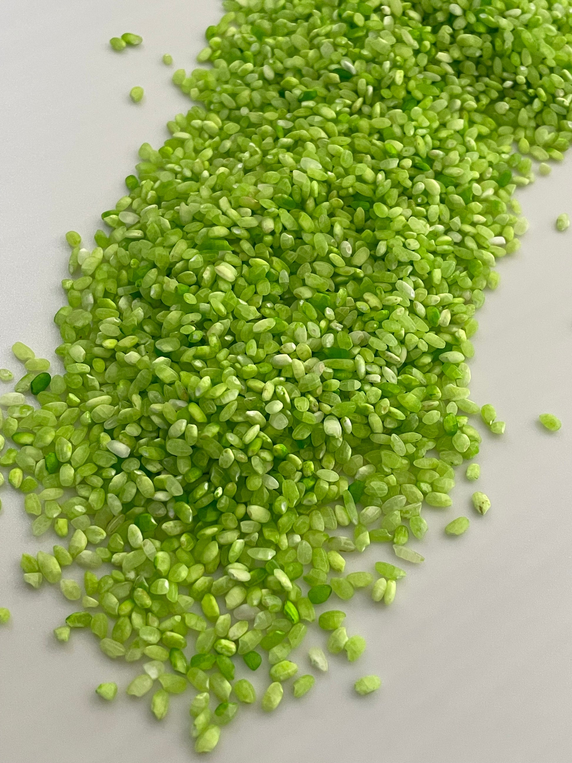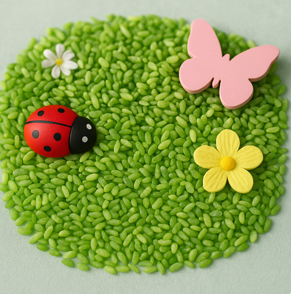 Plongez dans un univers de découverte avec ce riz coloré artisanal, teinté à la main avec du colorant alimentaire et du vinaigre blanc, pour une activité saine et sans danger. D’un vert éclatant et scintillant, il attire instantanément l’œil des enfants et invite à manipuler, transvaser, remplir, vider, toucher, observer…